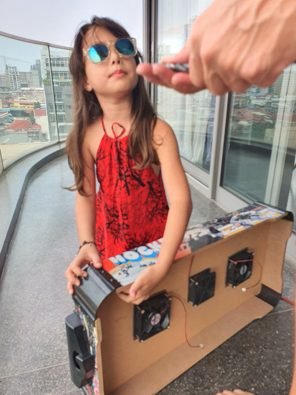 We received an air hockey table as a Christmas gift from her grandmother.
