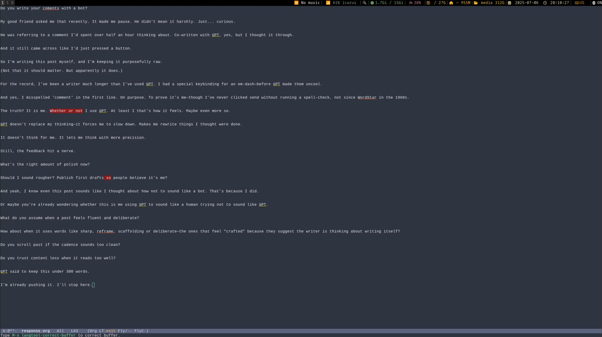 For the record, I've been a writer much longer than I've used GPT. I had a special keybinding for an em-dash—before GPT made them uncool.